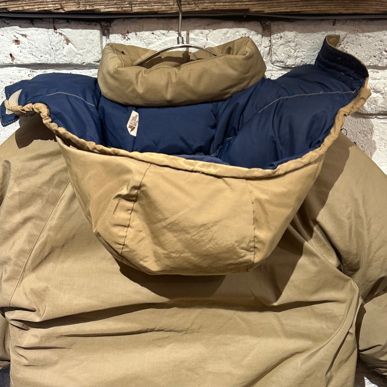 70年代後期のthe north faceダウンジャケット。こちらはオーソドックスなベージュ×ブルーの1着です。