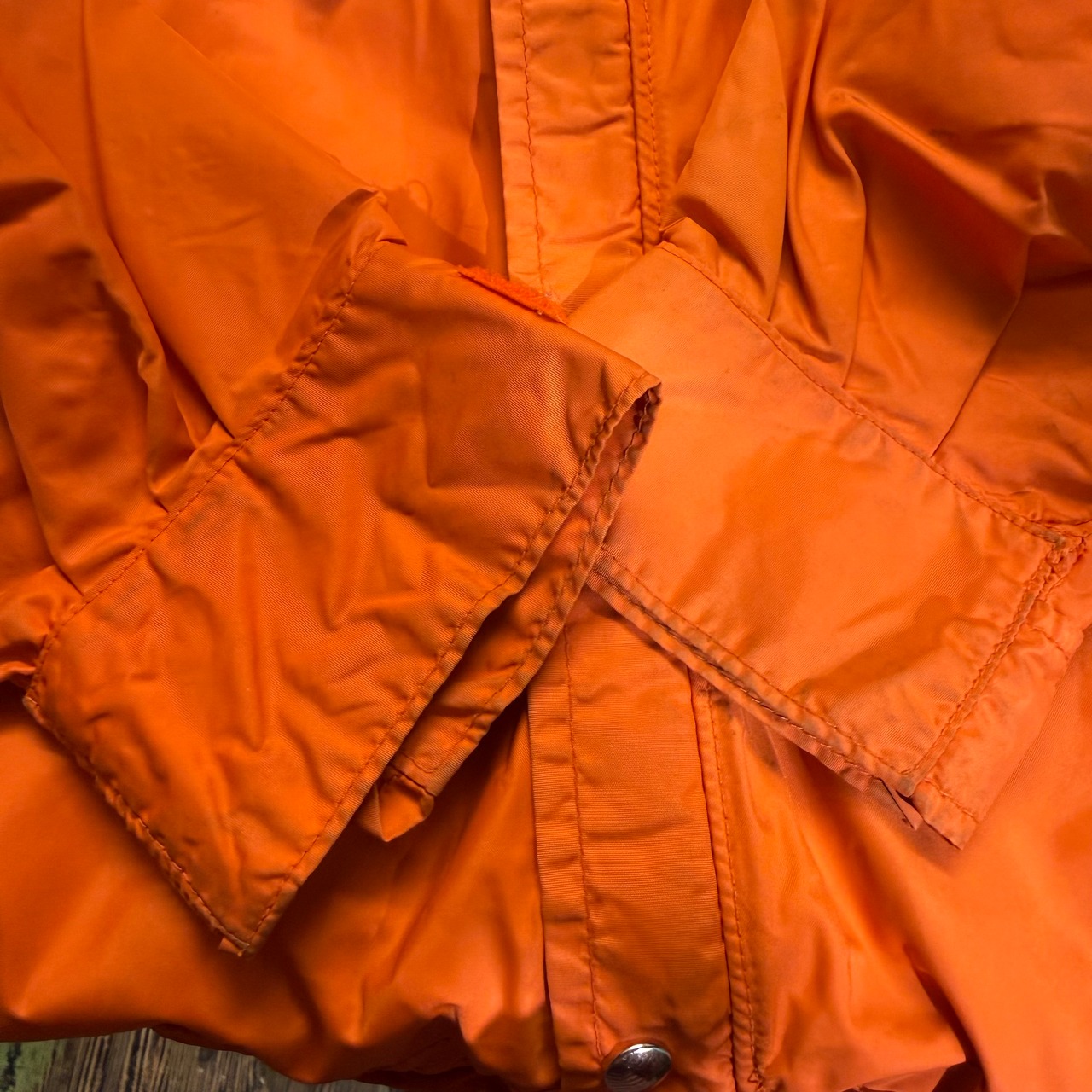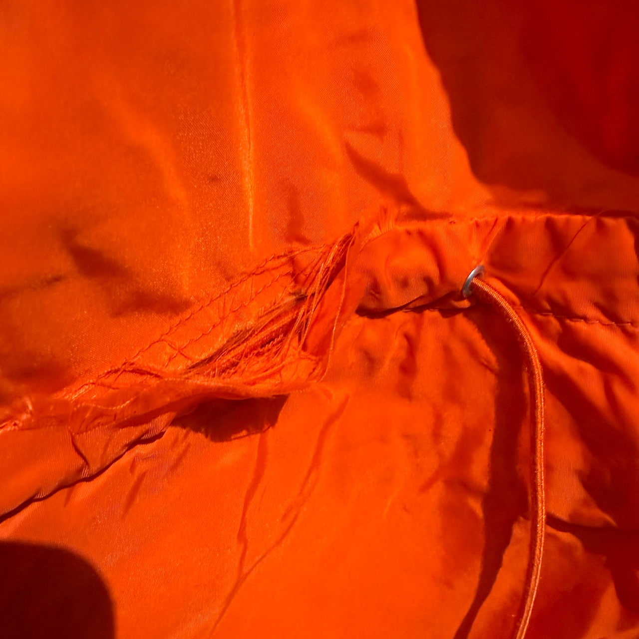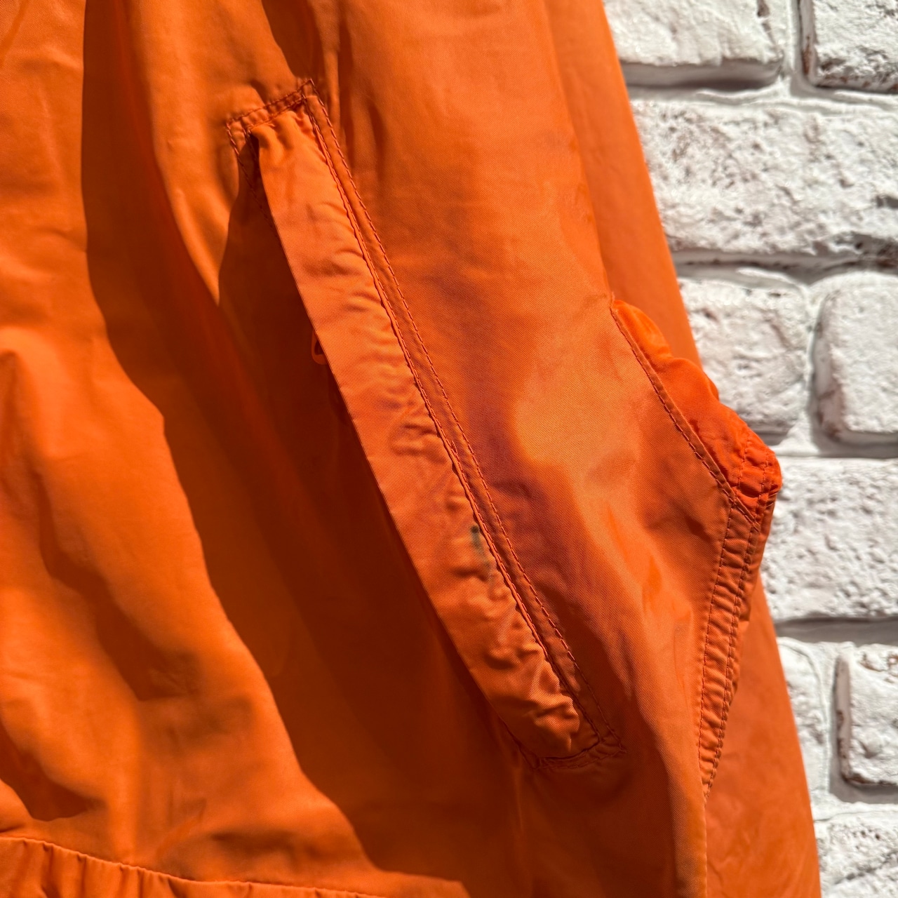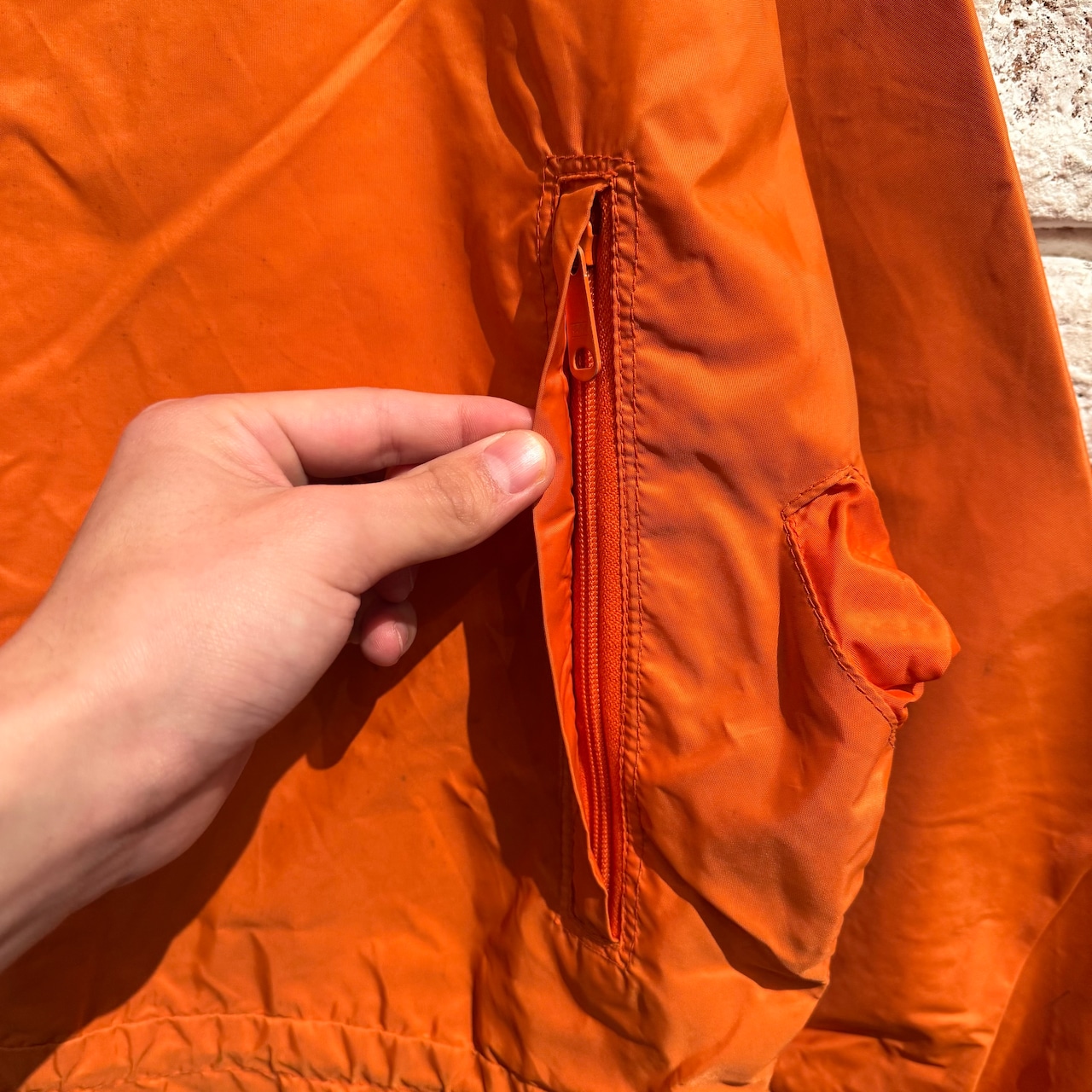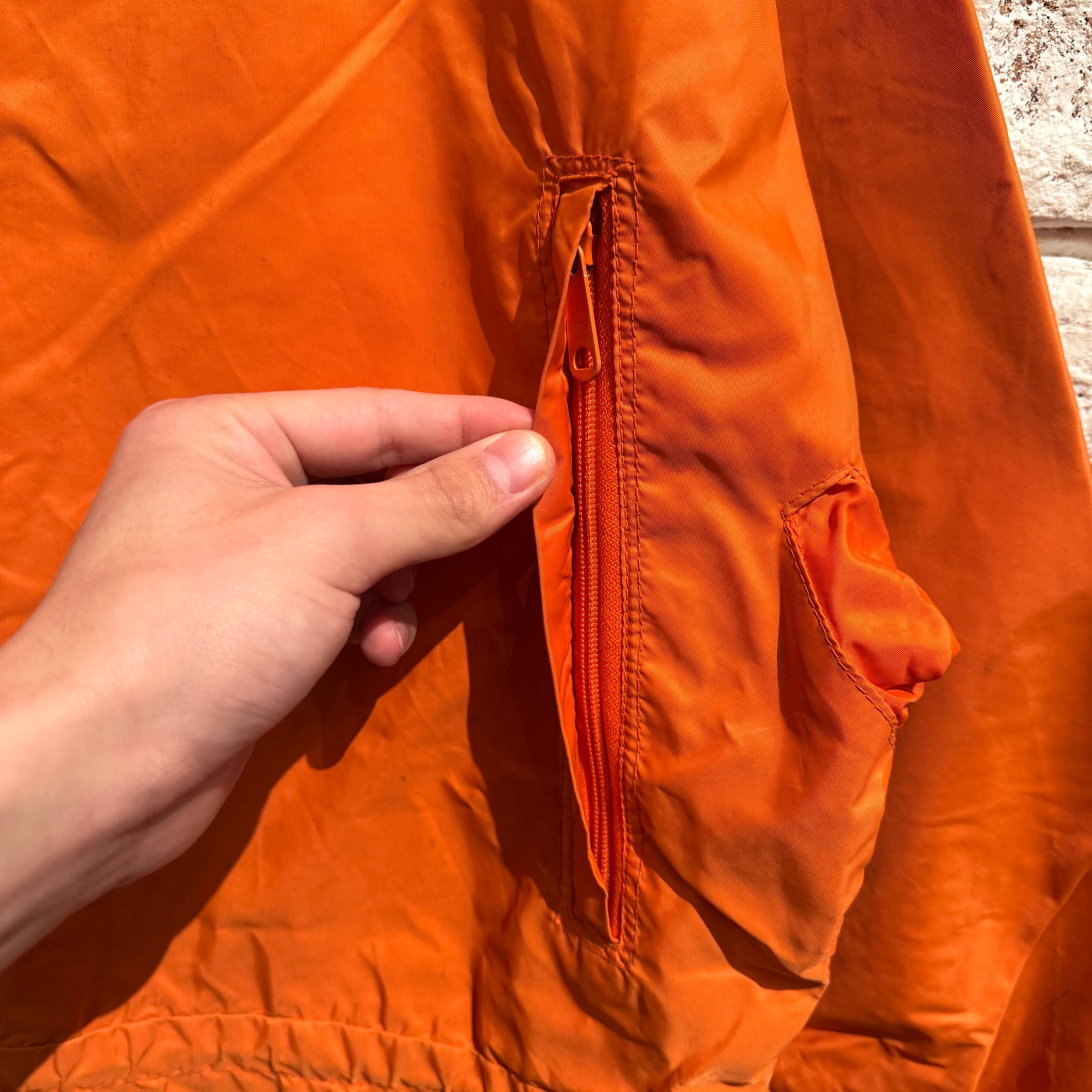 アウトドアらしい綺麗なオレンジでナイロン1枚仕立て。