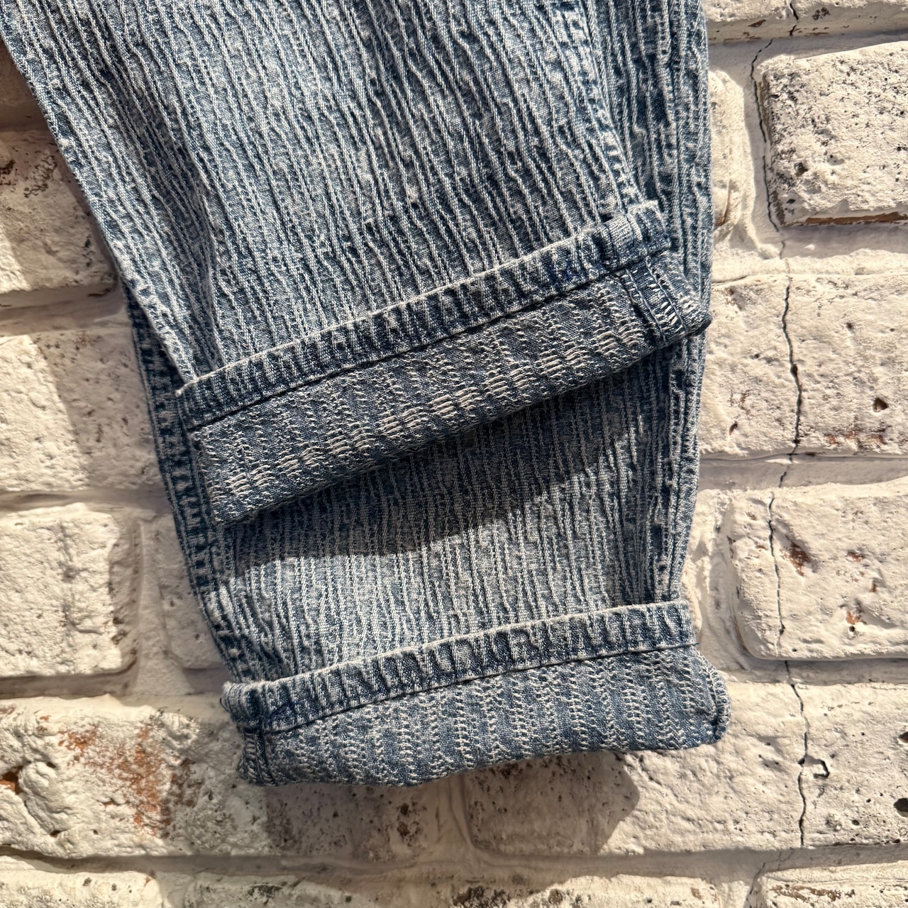 しぼりのような細かい立体感のあるアシッドウォッシュの一本。