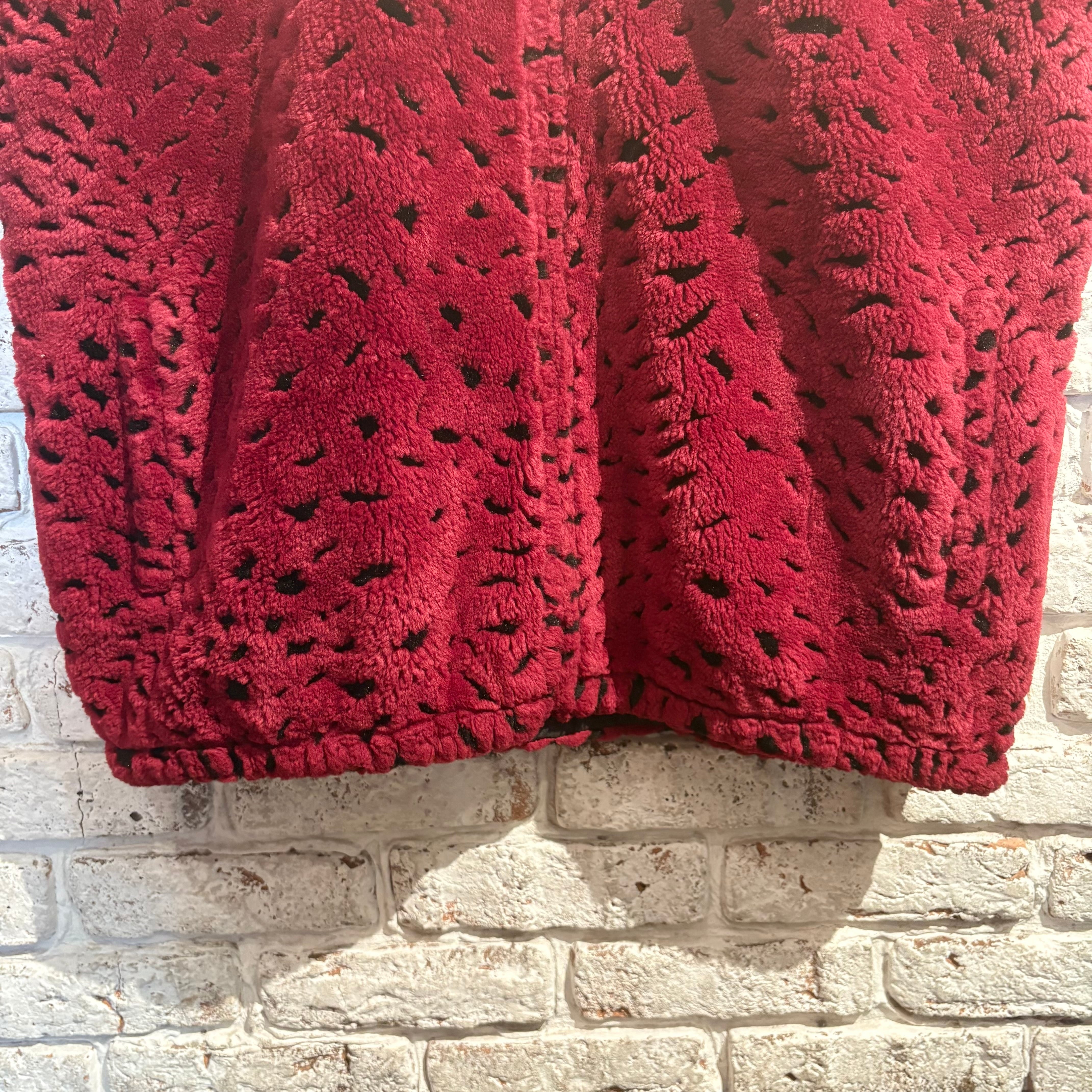 レオパード柄のようなベースにファーがエンジ色で