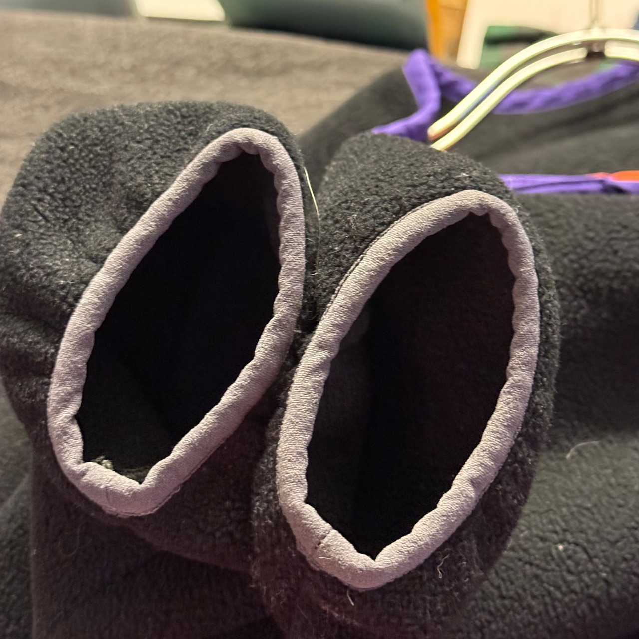 スナップボタンやパイピングはパープル。