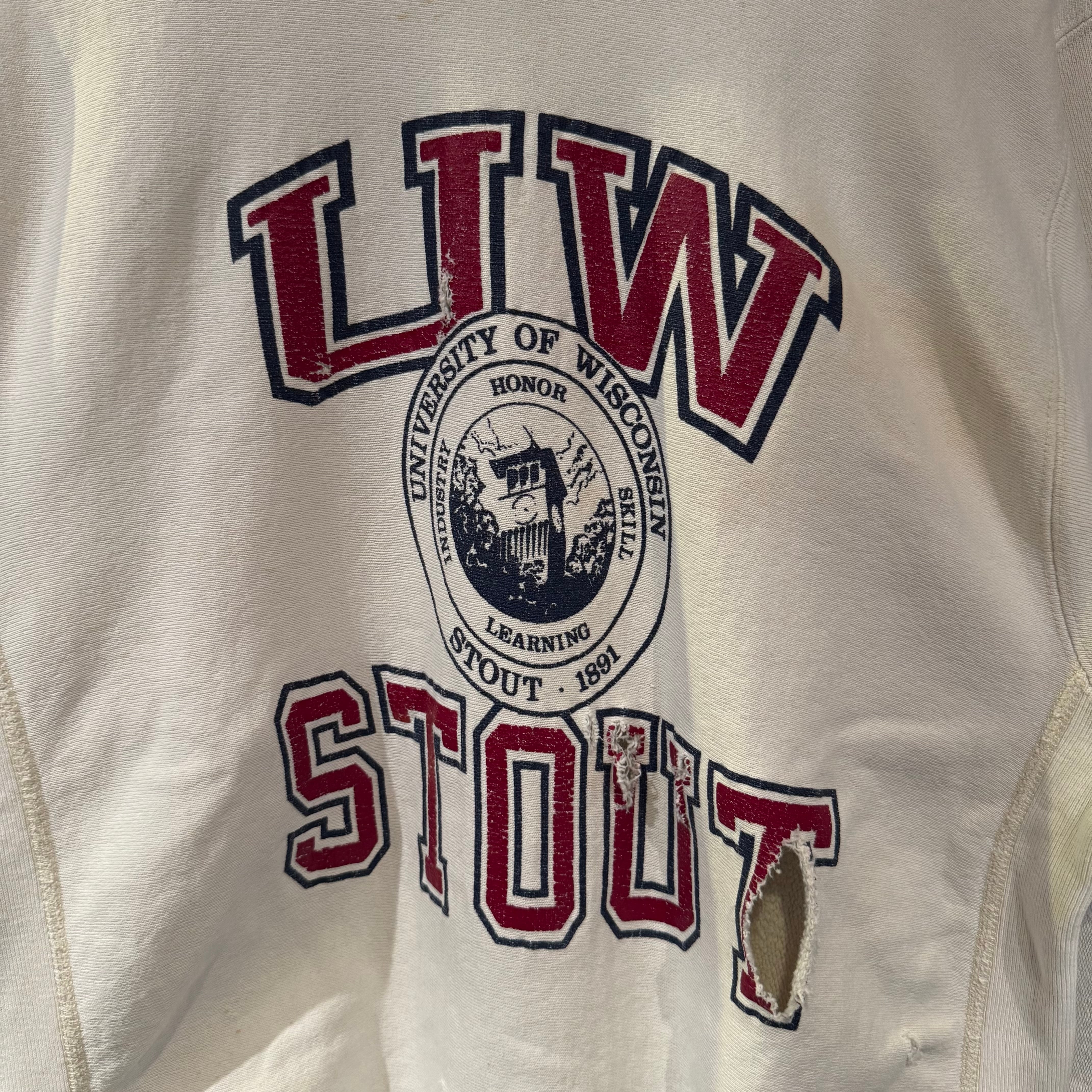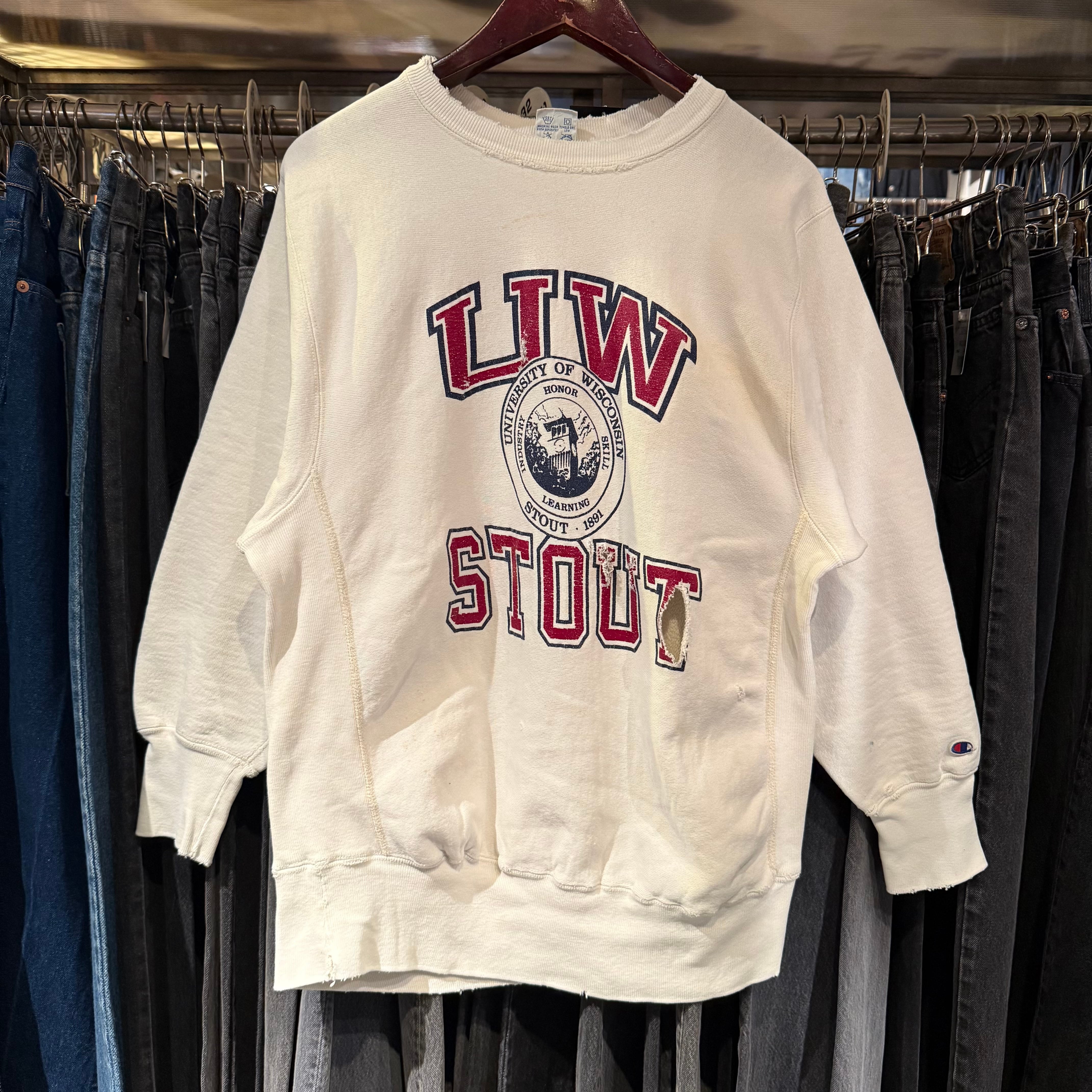 90s REVERSE WEAVE 3段 "UW STOUT" PRINT CREW
