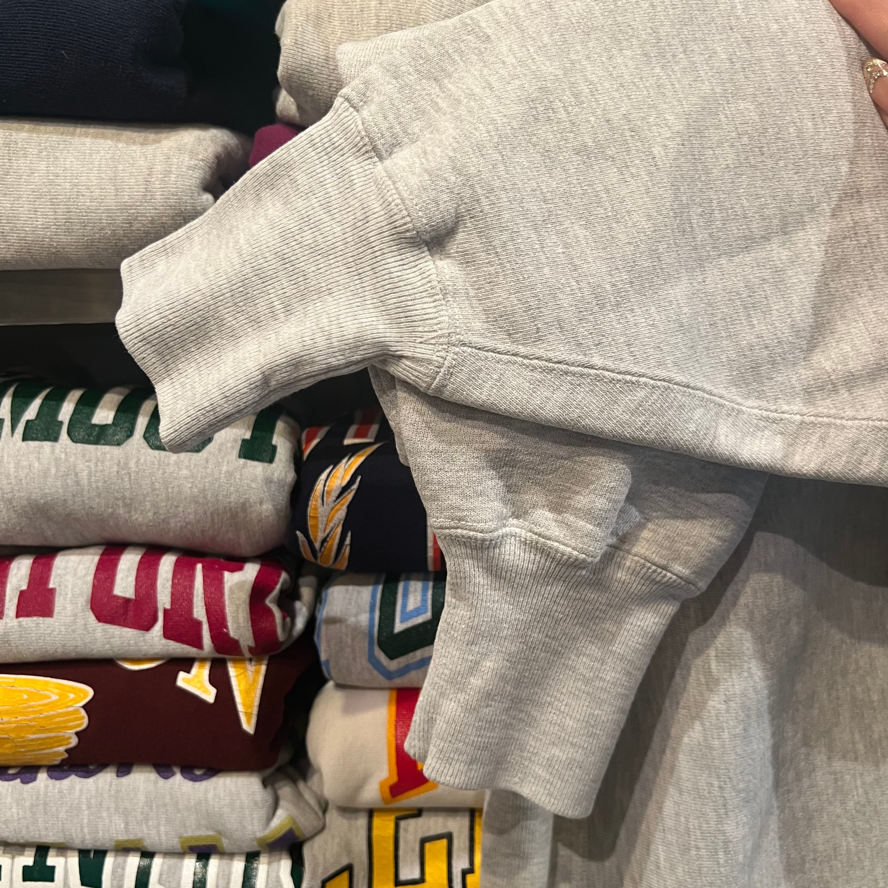 グレーボディーにネイビーのカレッジロゴがプリントされている王道の古着です。