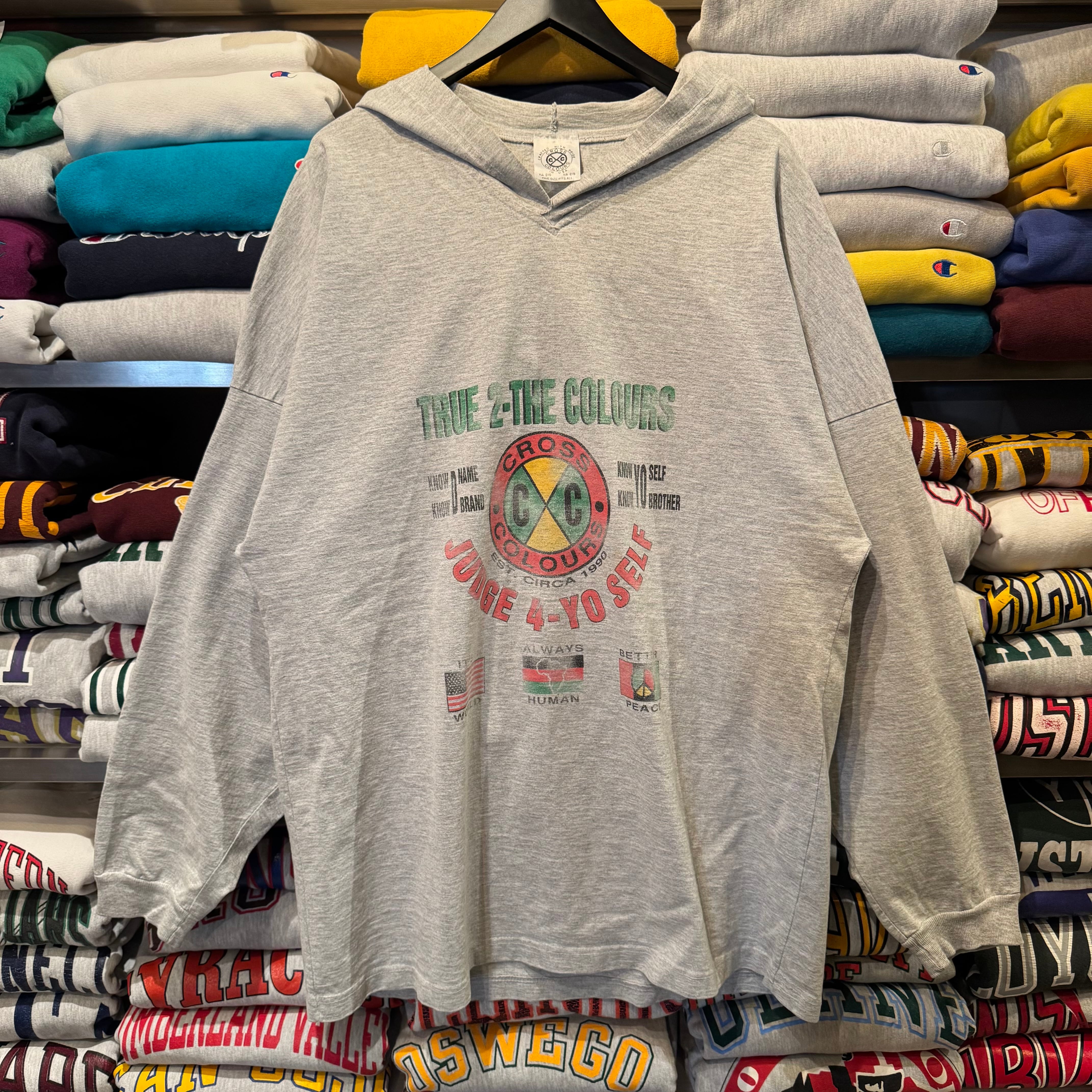 90年代のヒップホップ黄金期に登場した、CROSS COLOUR(クロスカラーズ)というブランドのT-シャツパーカーです。
