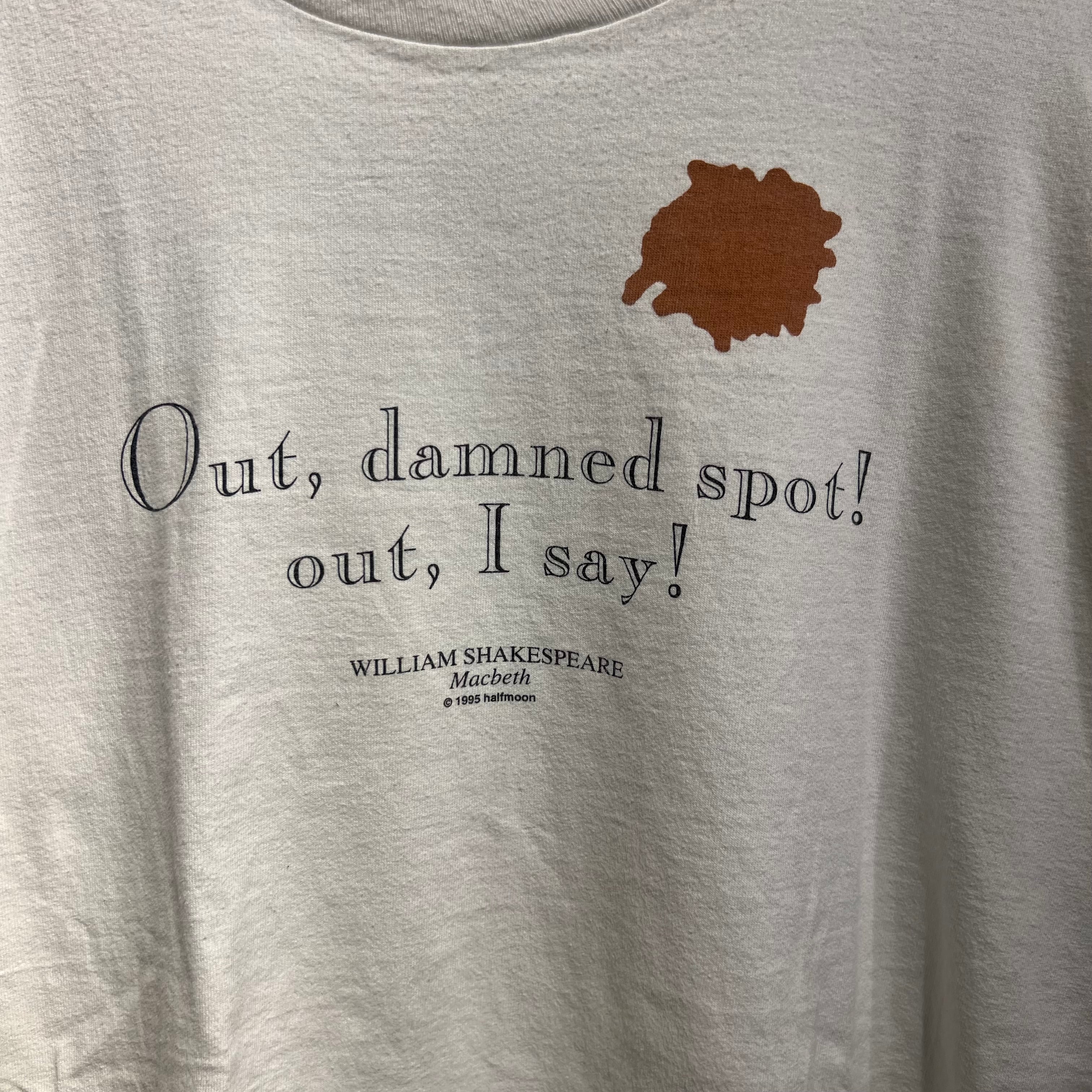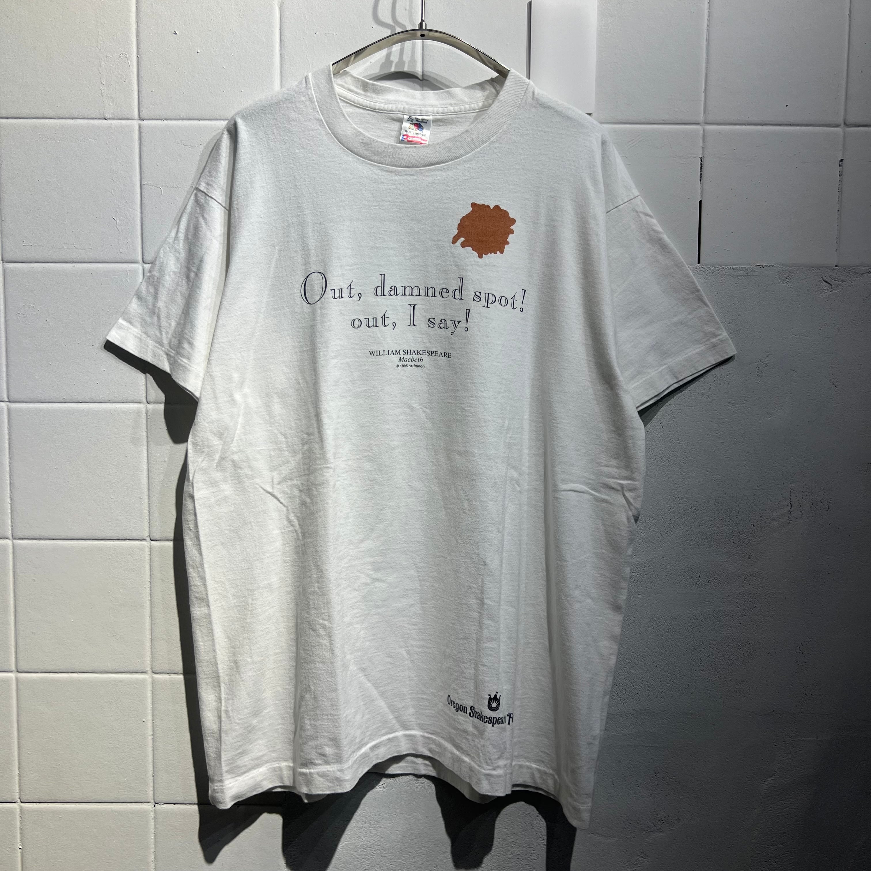 シェイクスピアの有名な劇中のセリフをフロントにプリントしたTシャツ