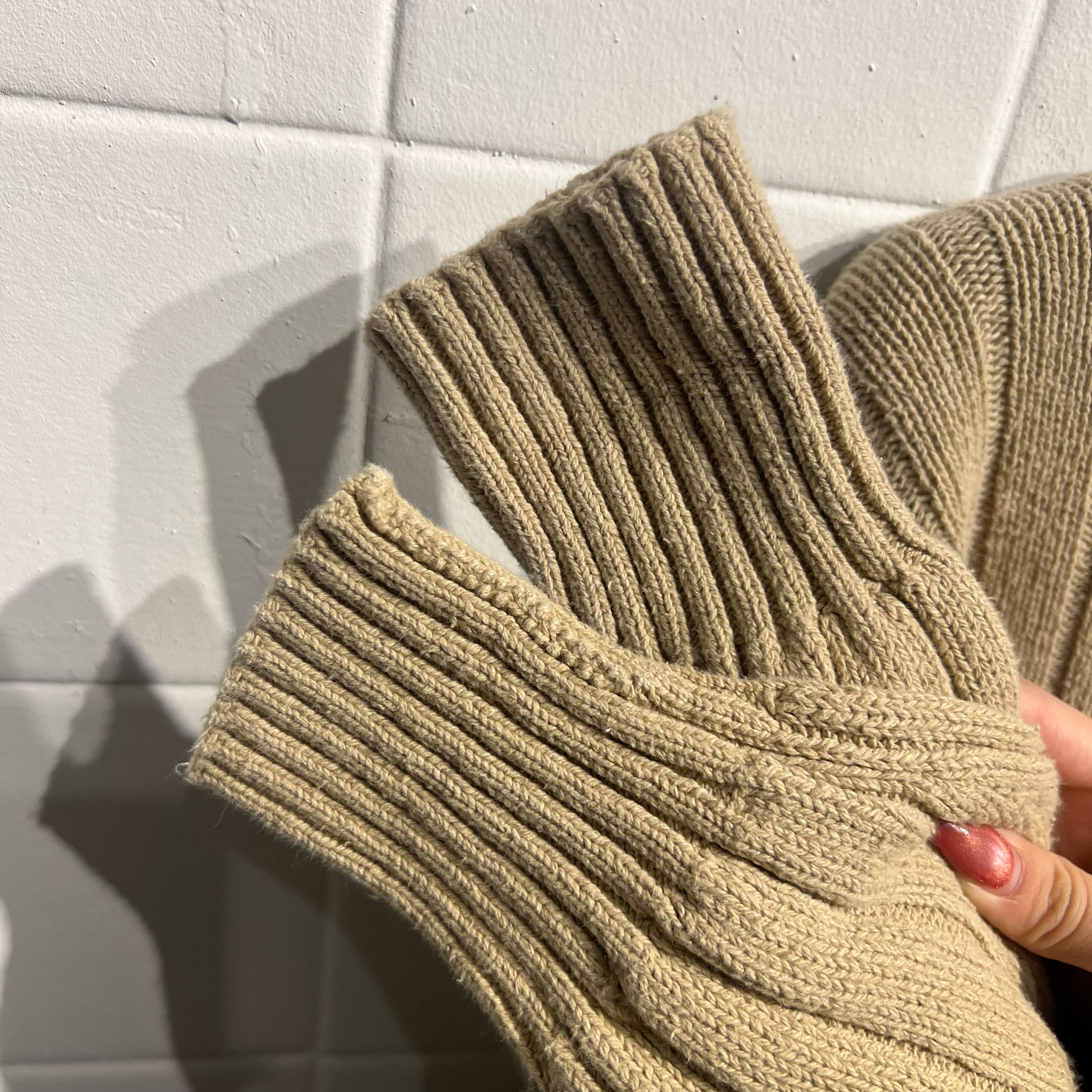綺麗なベージュカラーと太めのリブ模様がシンプルで綺麗めな印象の1着です。
