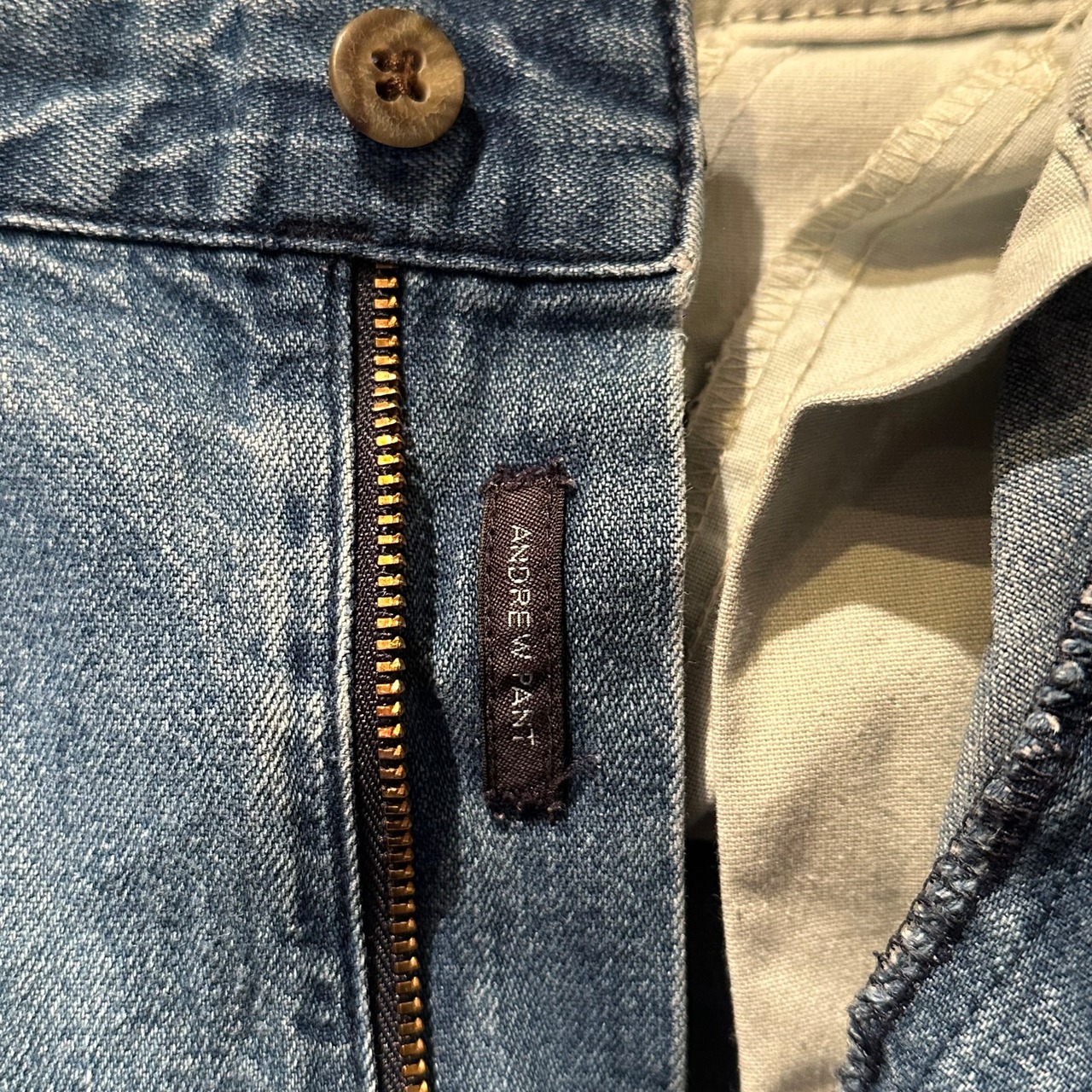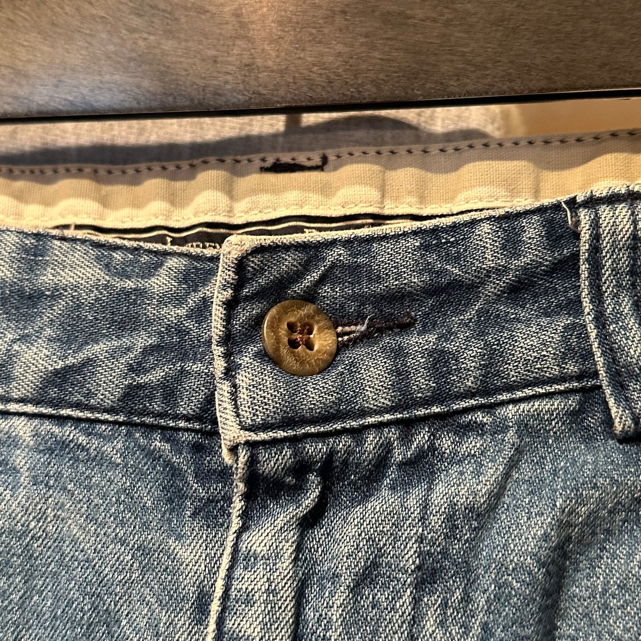 しっかりと2タックも入ったシルエットのいい一本、程良く色褪せた穿きやすい色味。