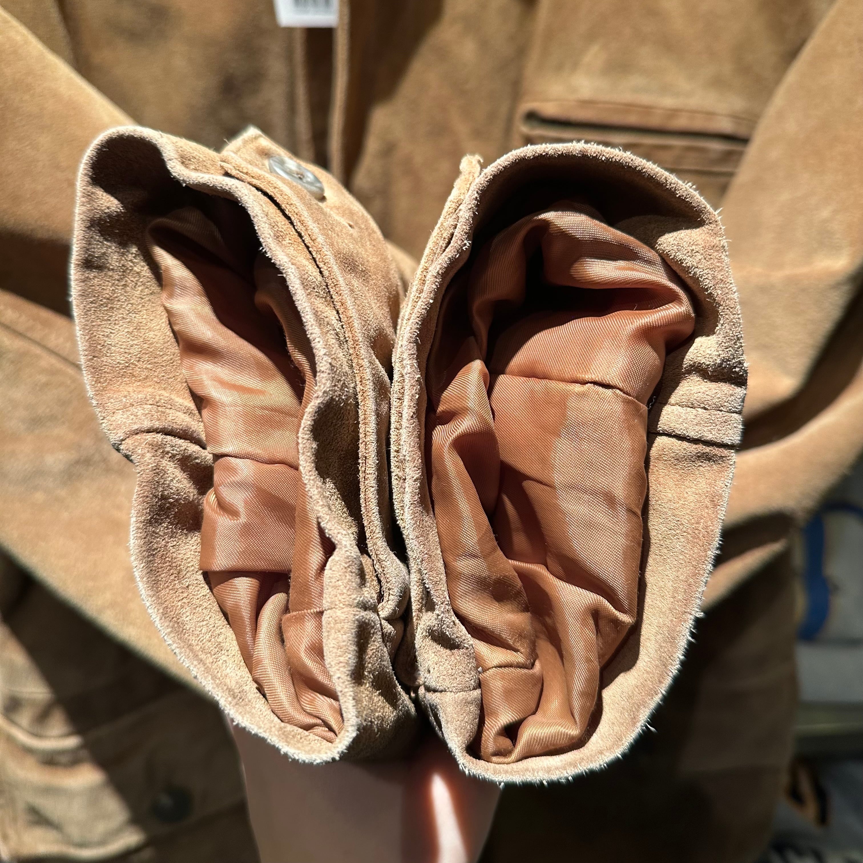 シェルはもちろんリアルレザー。古着市場だと身近に感じるラルフですが、定価だとかなり高価なやつです。S表記なので小さいかなと感じる方多いと思いますが、作りが大きいものが多いので実寸で考えると意外と男性でも着れる方は多いんじゃないかなと。