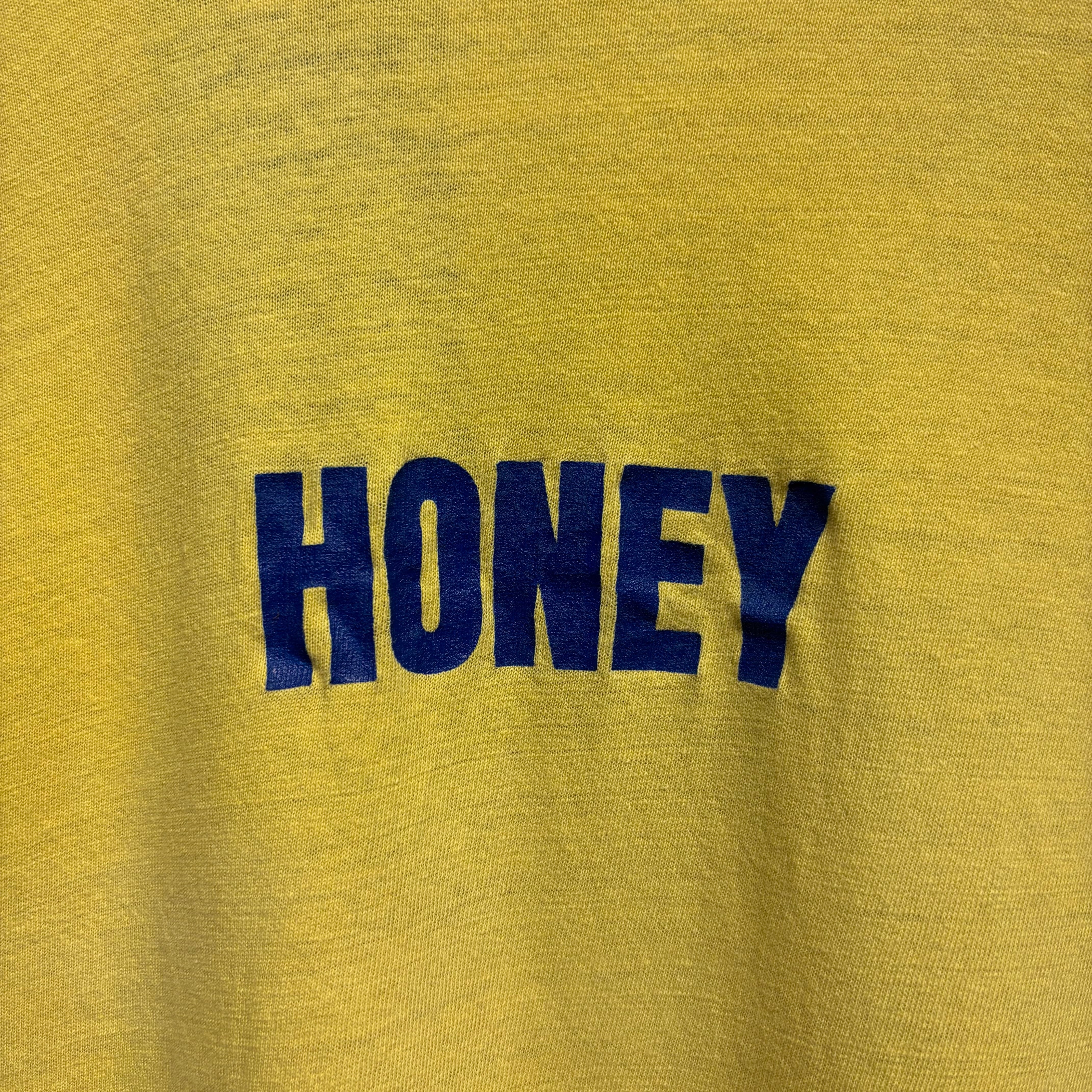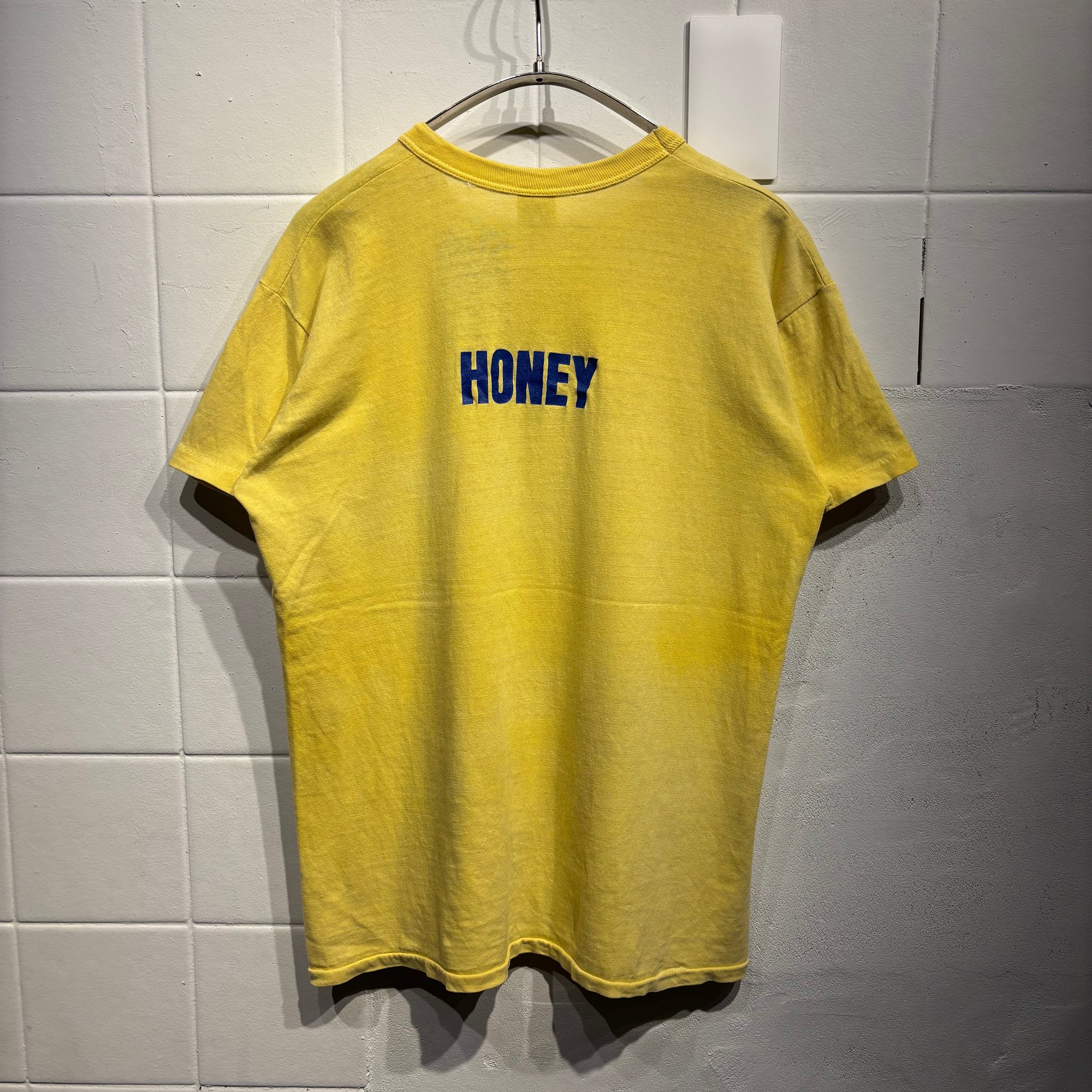 当時の広告Tとしてバリエーション豊富なフレーバーがあります。こちらはイエローボディに青プリントの"HONEY"。
