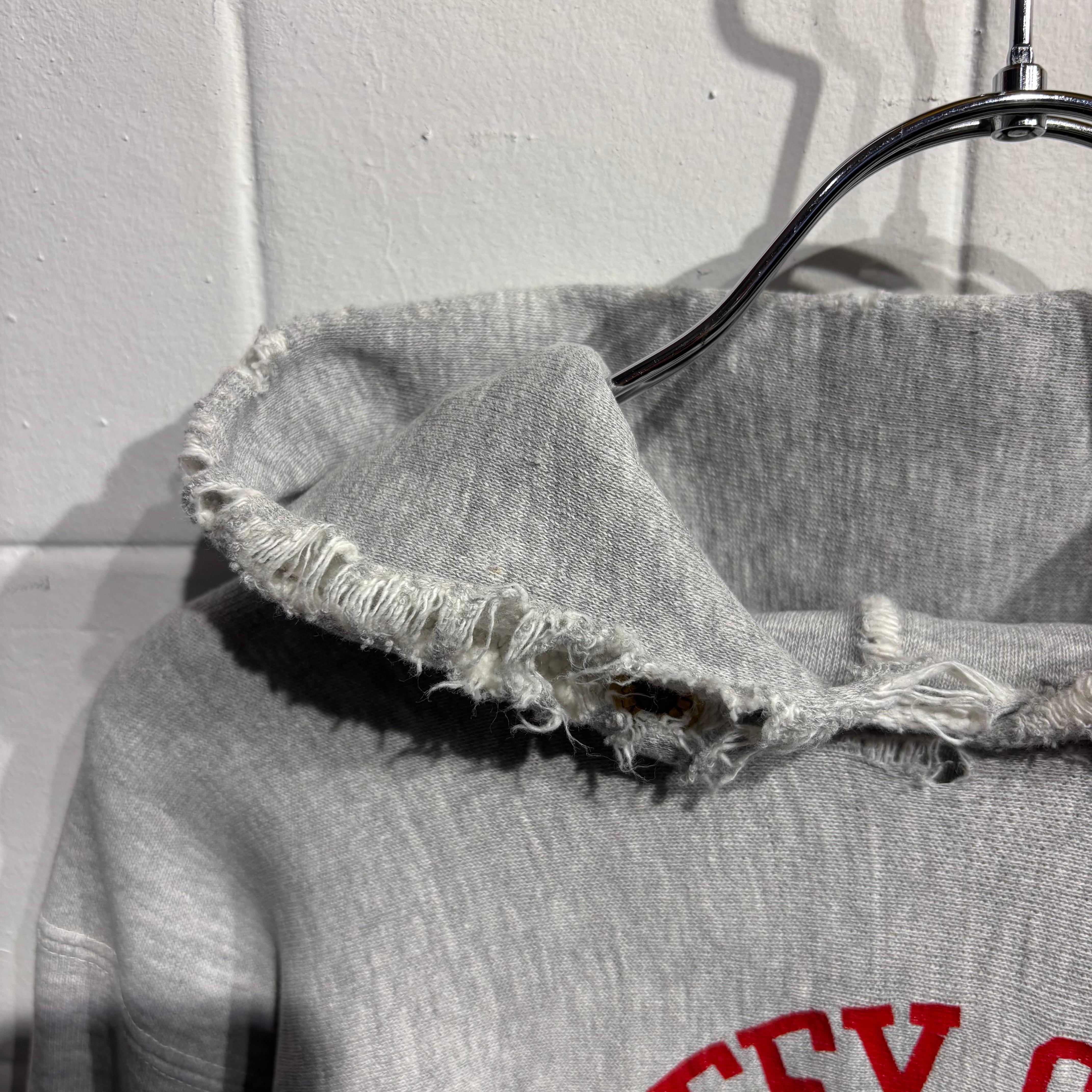 70年代チャンピオンのリバースウィーブパーカー。青単タグ、バーなしなので70年代後期と判別できます。この年代はアームホールが80s90sに比べて細めなので、生地のもたつきが気になる方にはおすすめしたいところです。