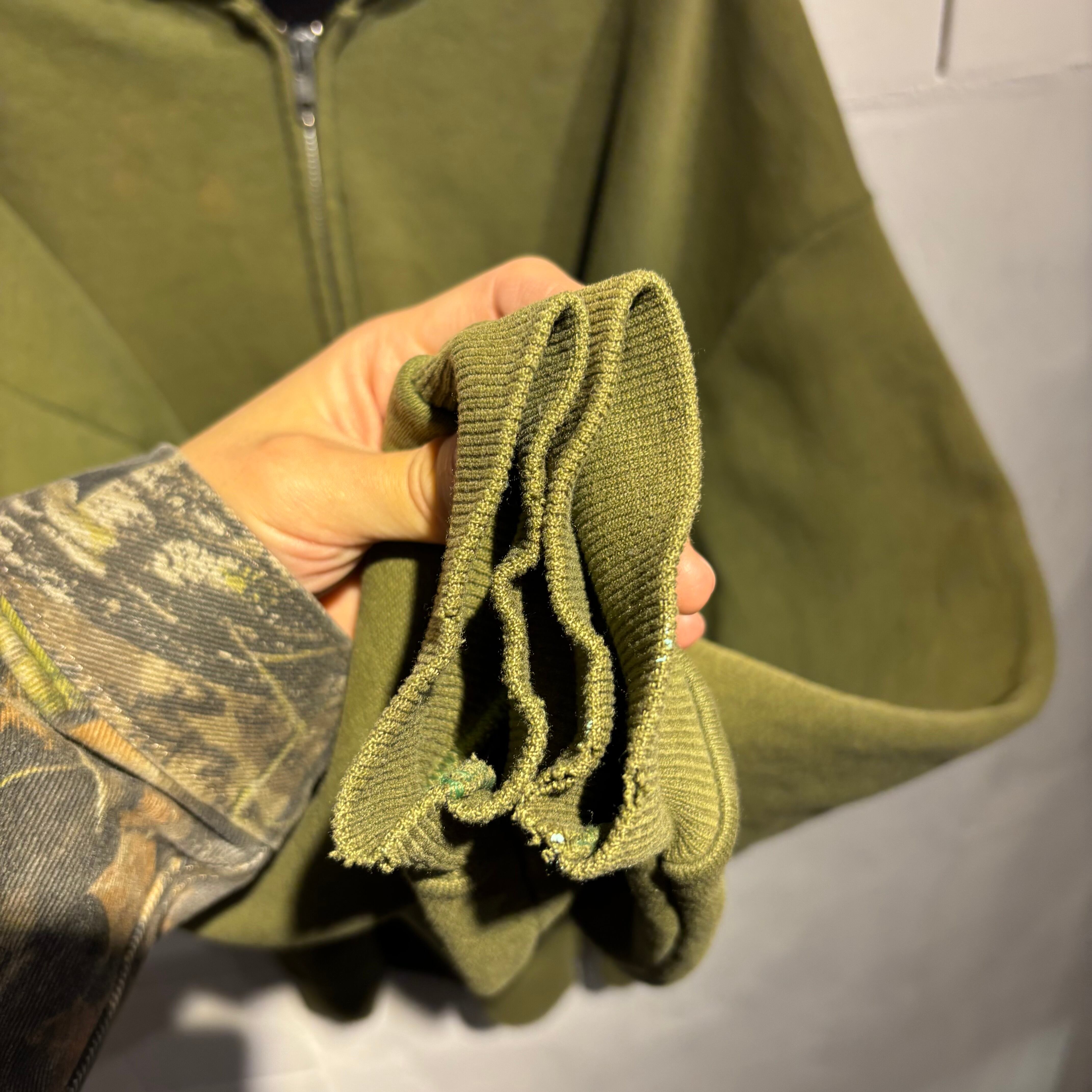 袖リブに軽くダメージはあるものの、全体の雰囲気でほぼ気にならない程度だと思います。
