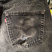 裾のスレやバックポケットにダメージがありますが、まだまだ着ていけるコンディションじゃないかなと思います。