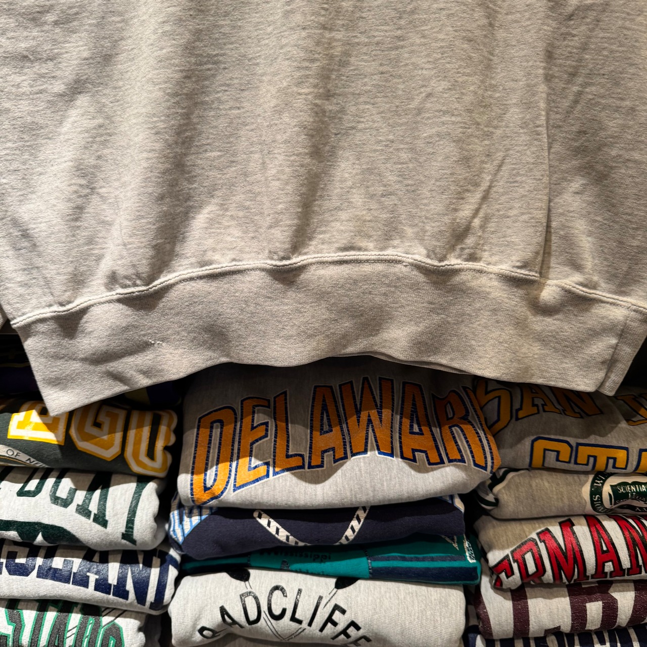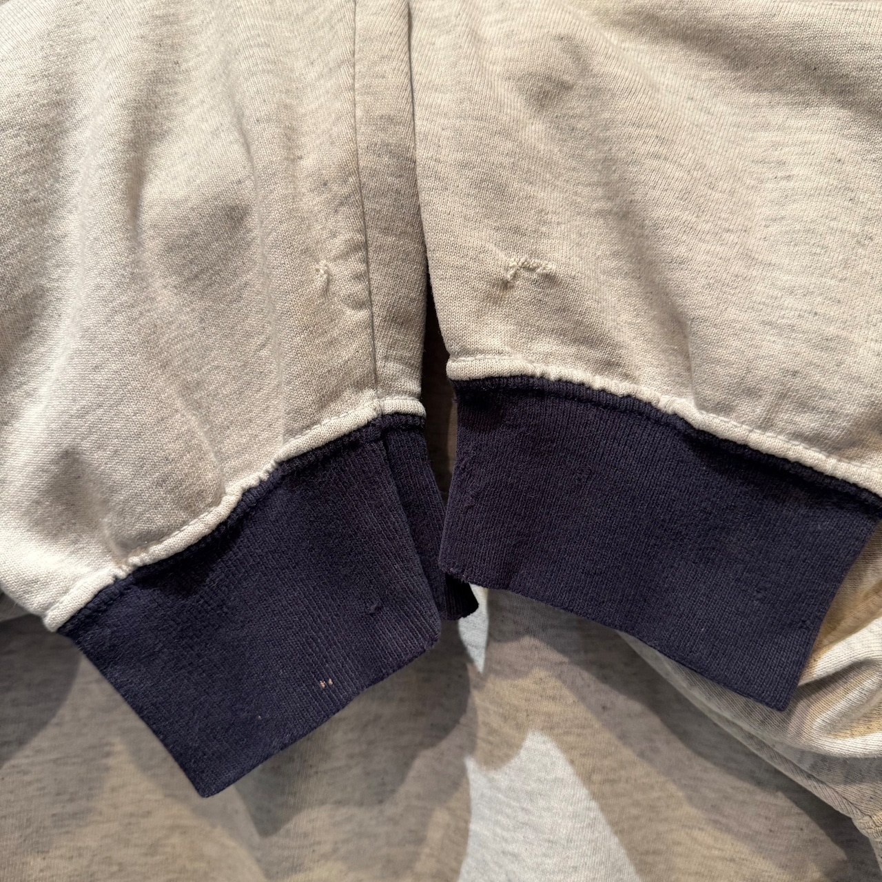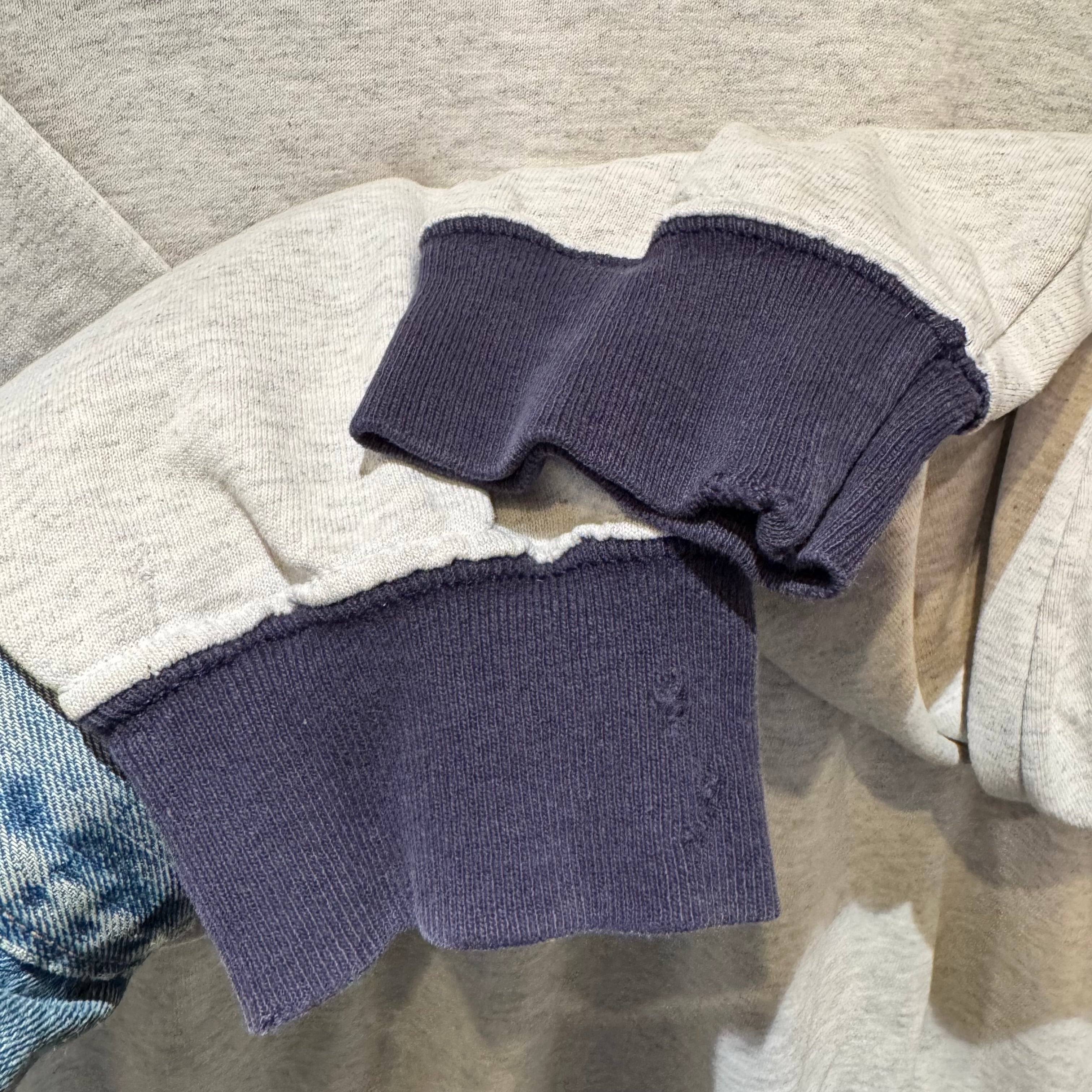 いわゆるスウェット型ですが生地感はTシャツの薄いオンス。
