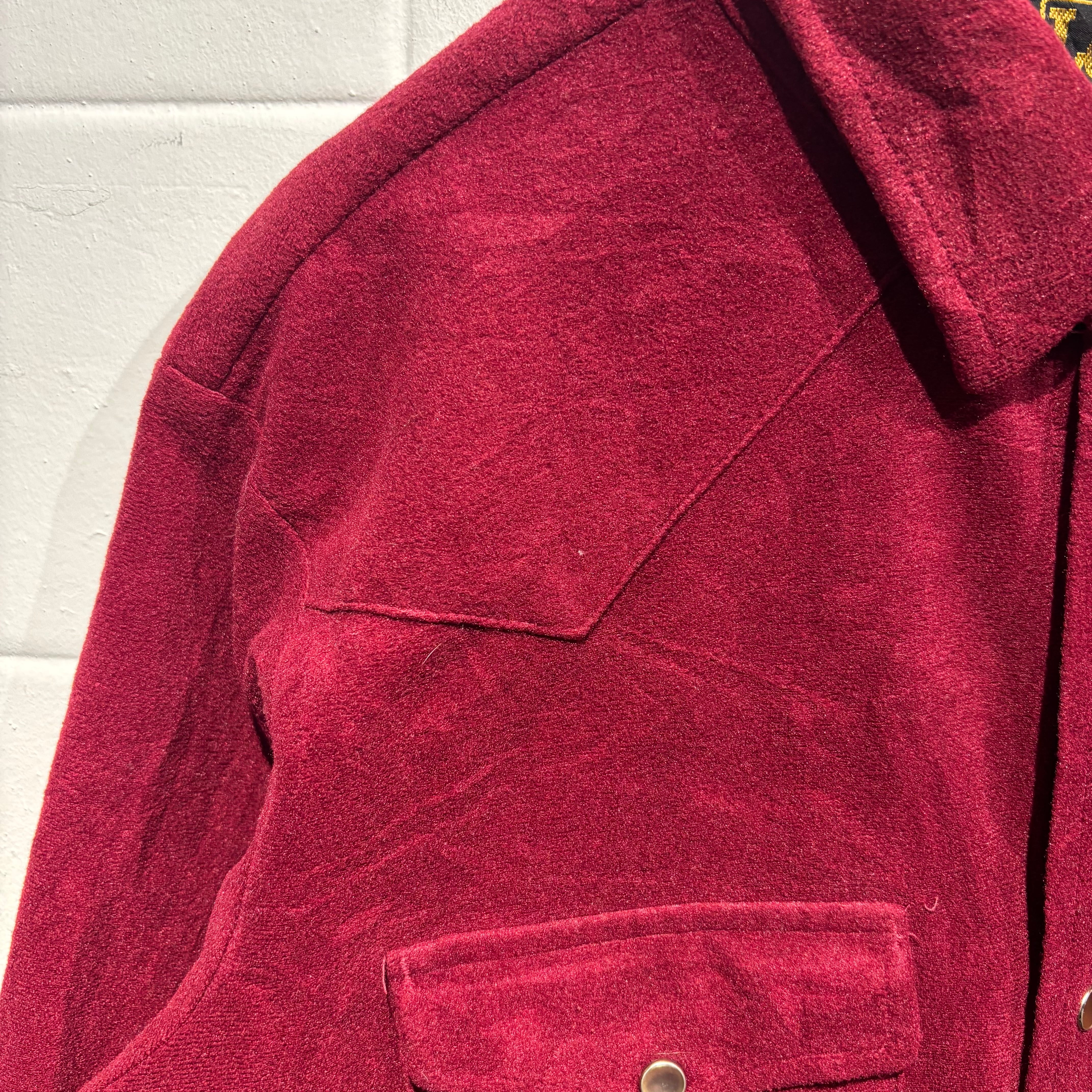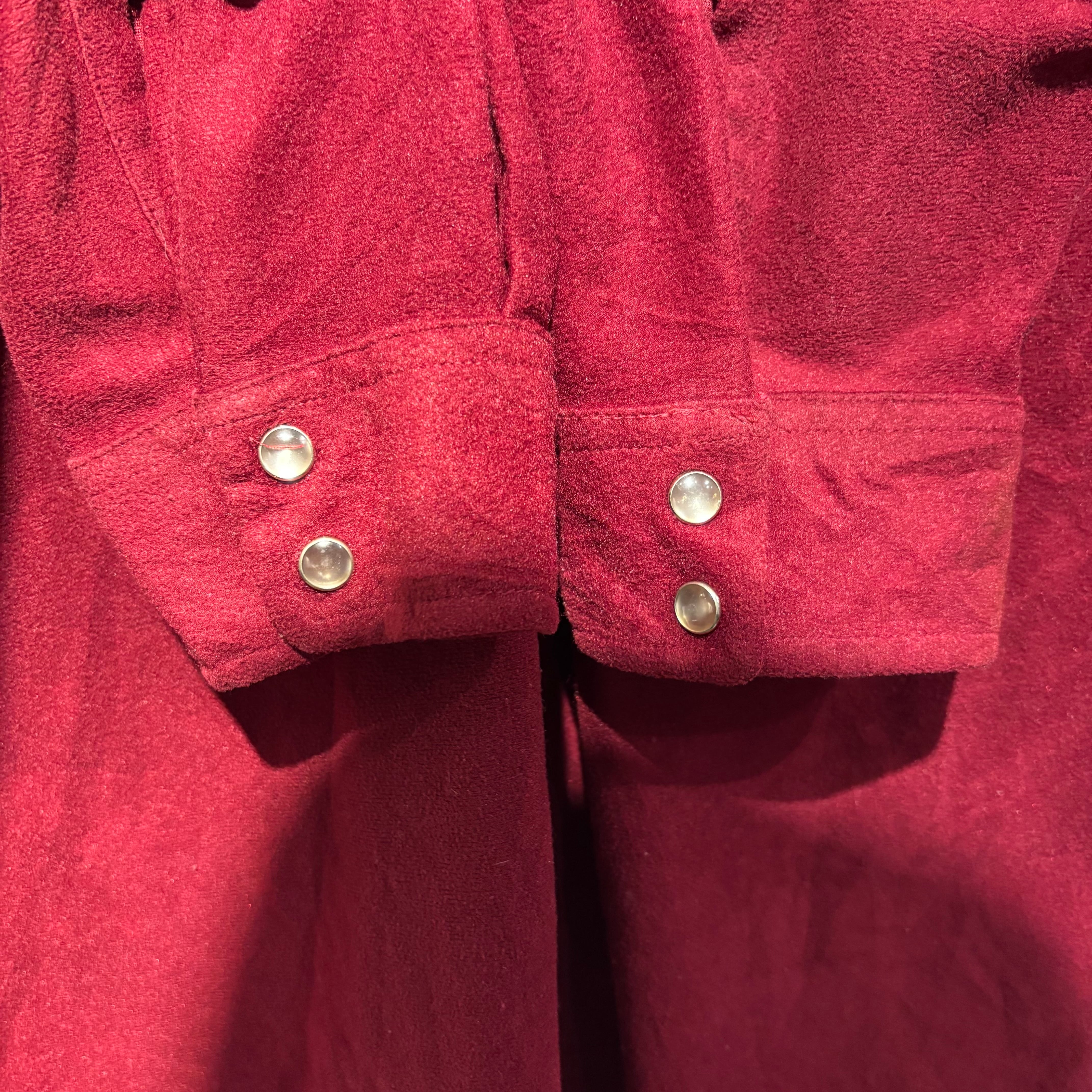 落ち着いたワインレッドカラーにシルバーのスナップボタンが大人っぽい印象です。