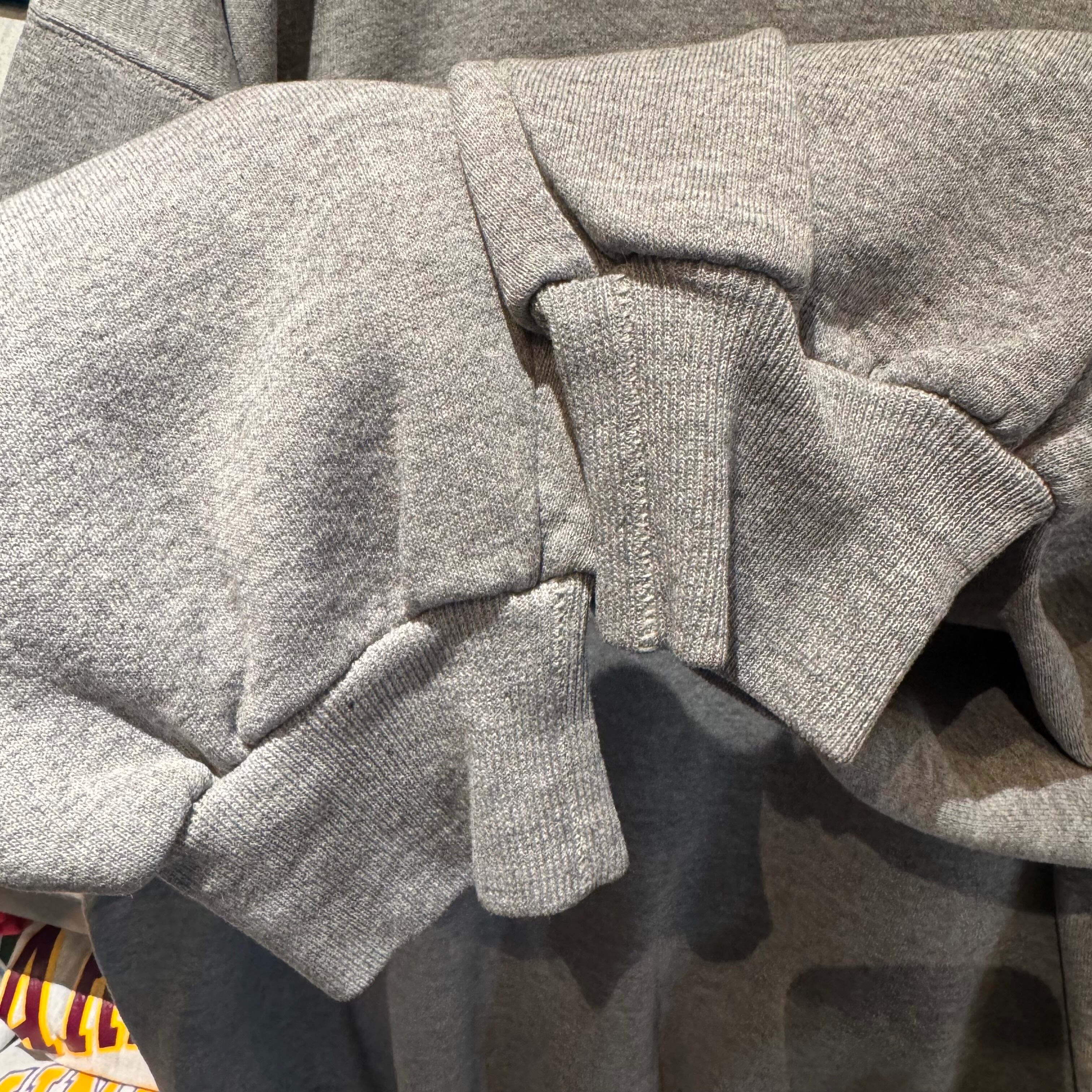 カレッジ物といえばたいていのモノは校名などがデカデカと入るプリント物のイメージですが、かなり小さめかつ黒単色でフロントに配置されたデザインが、なかなか見ない感じで新鮮ですよね◯