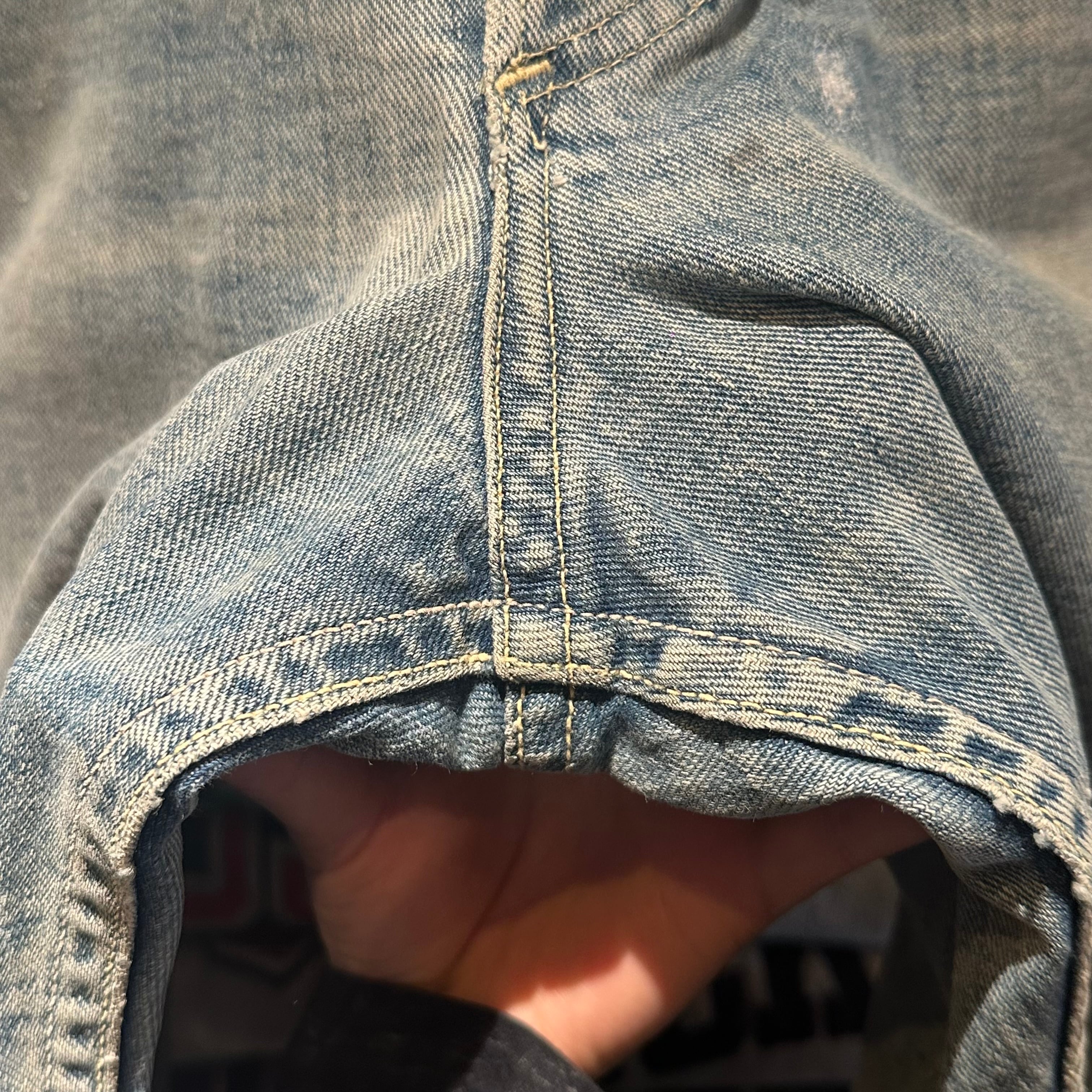 色落ちはかなり進んでいてライトブルーの色味ですがデニムらしい雰囲気が良好。