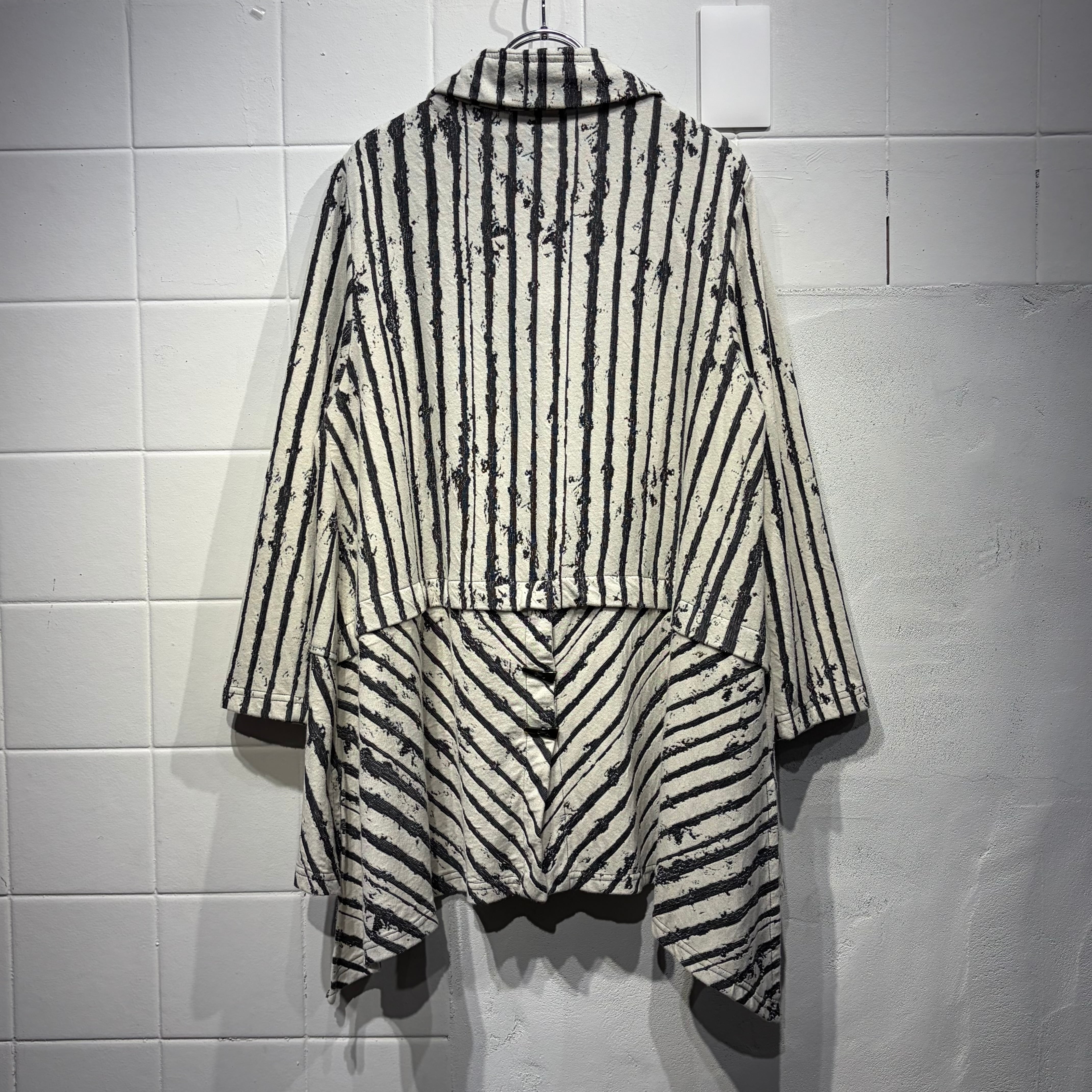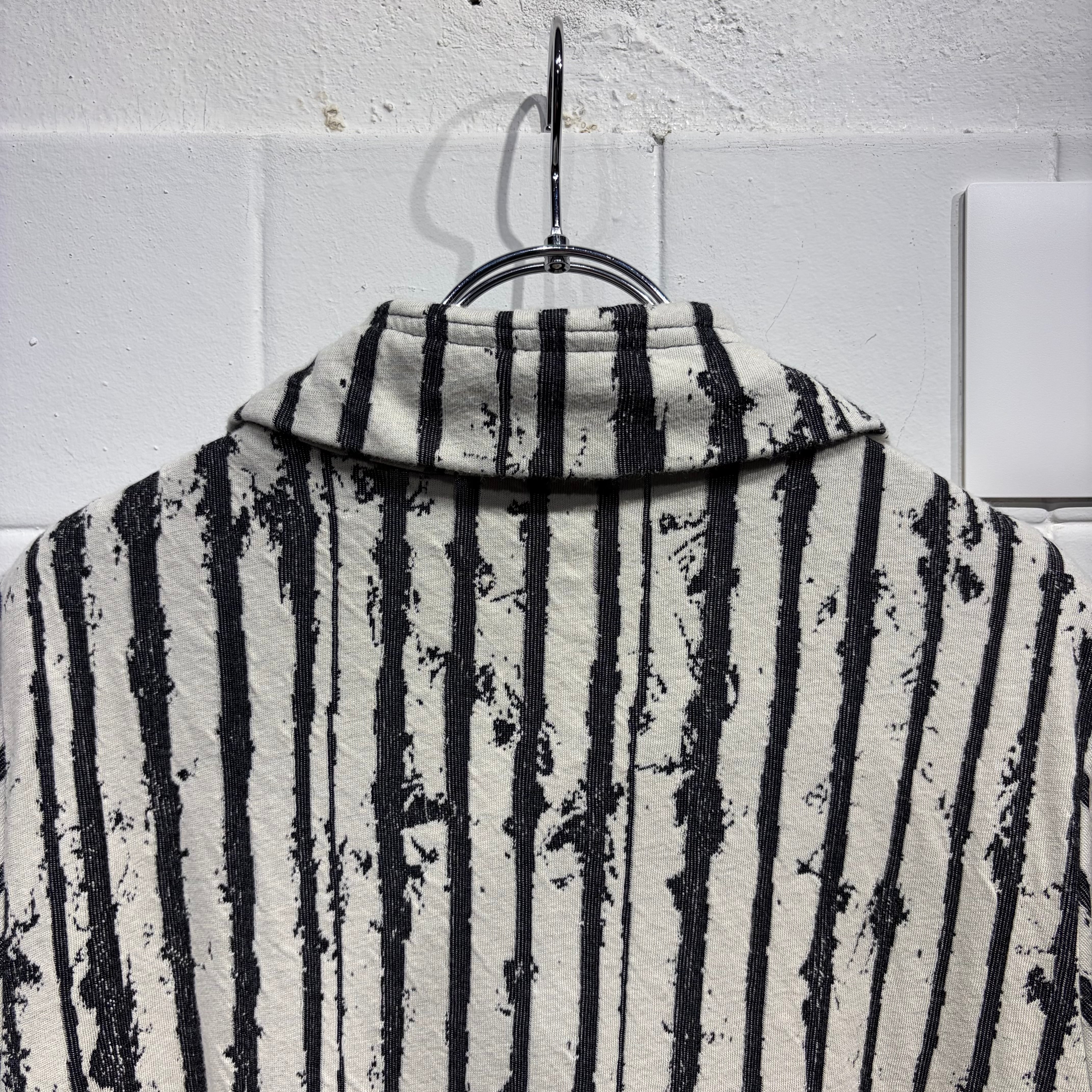 黒と白のストライプ柄のスウェットカーディガン