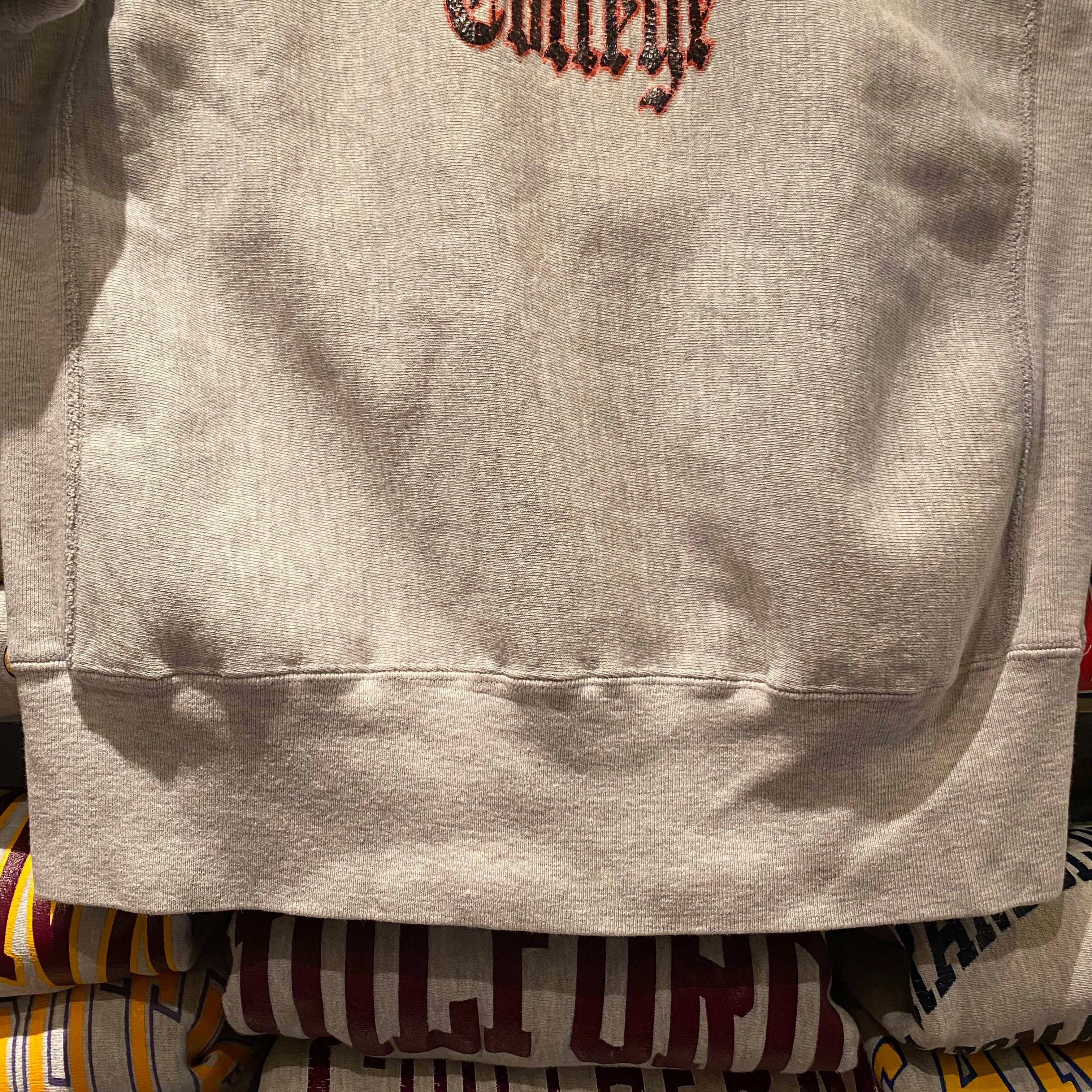 リバースでオールドイングリッシュといえば、オハイオステートプリントくらいしか普段見かけないですし、ゴシック体のデザインの物がほとんどなので、オハイオ以外でオールドイングリッシュの個体は少し珍しいかなと。